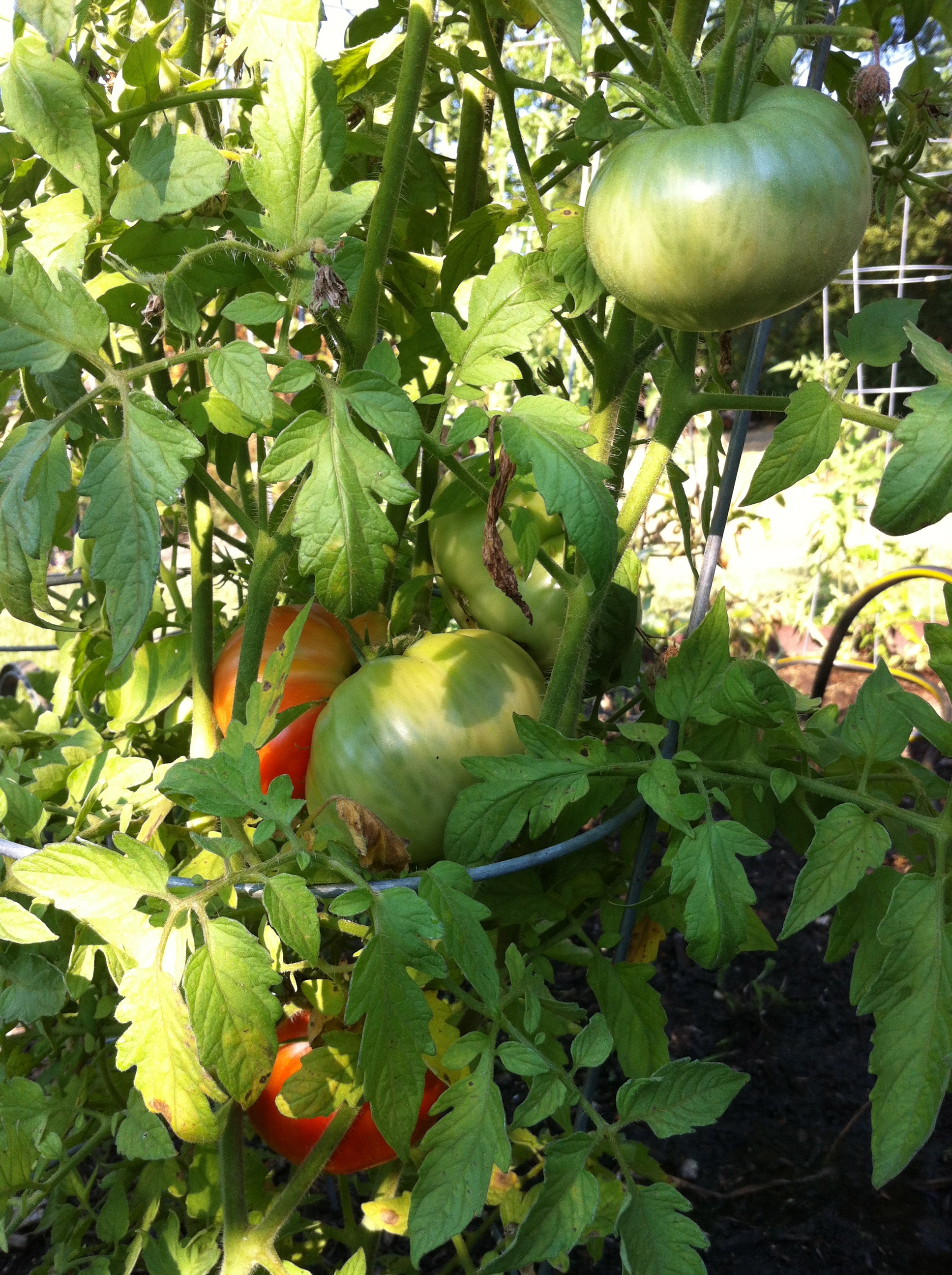 I put them outside in a jug on April 2, left them alone and had amazing plants in mid May ready to take their place in Mr. G’s driveway garden. The 3 varieties I planted in this jug were Gardener’s Delight, Steak Sandwich and Beefsteak.